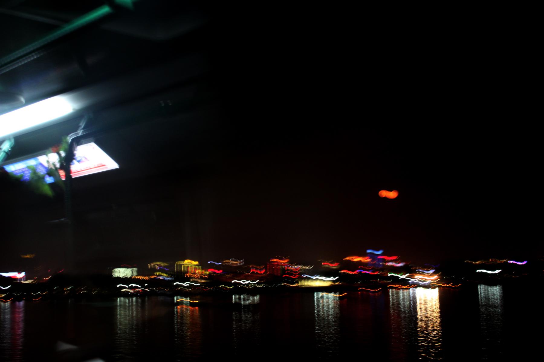 バスは北山路を杭州駅方面へ、つまり月の出ている街の方面へ走っていくわけで、楼外楼のある島を越えた辺りでまさに文字通り「ぽかん」と空に出たというわけです。