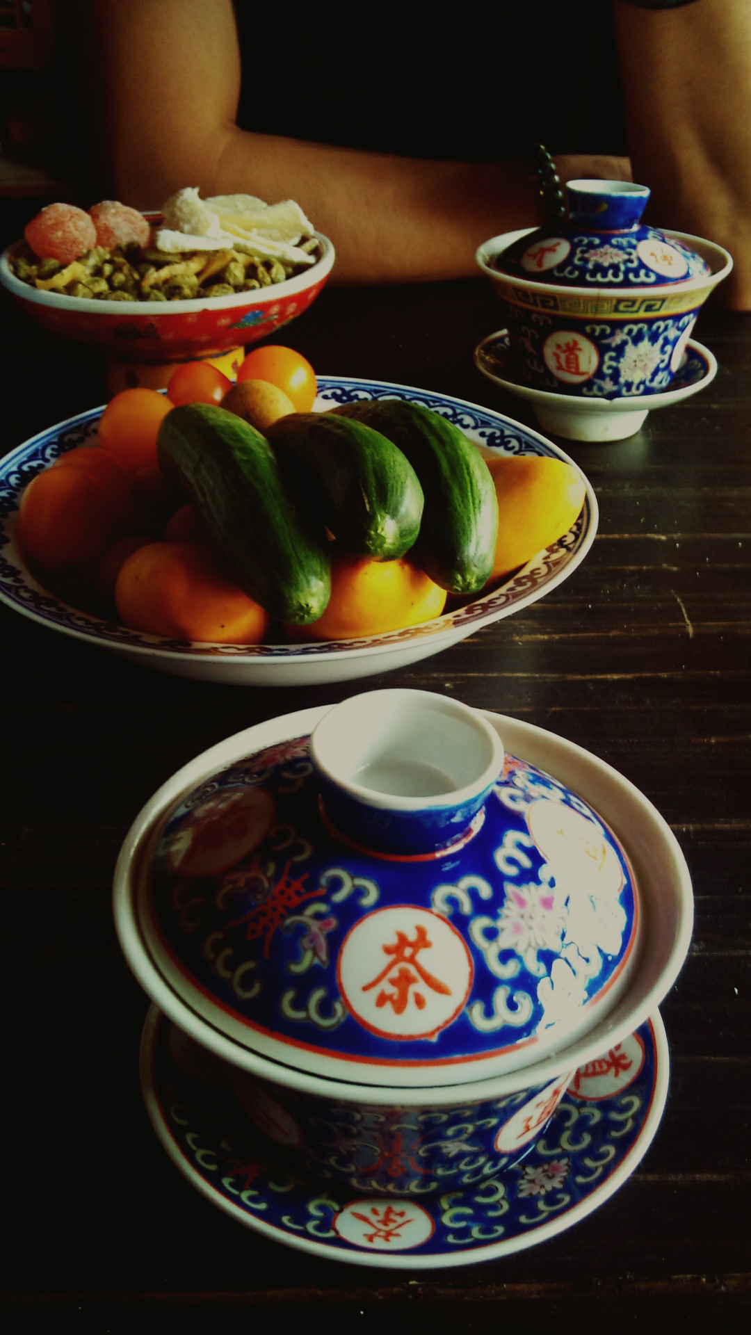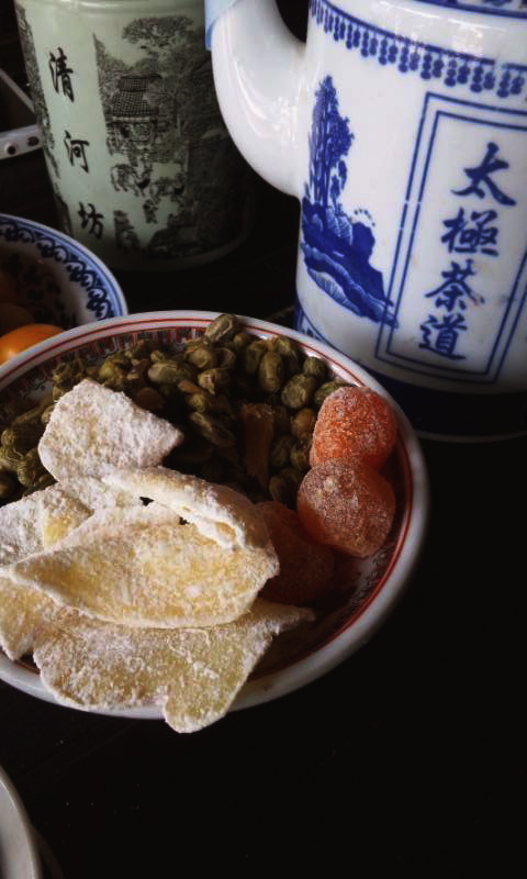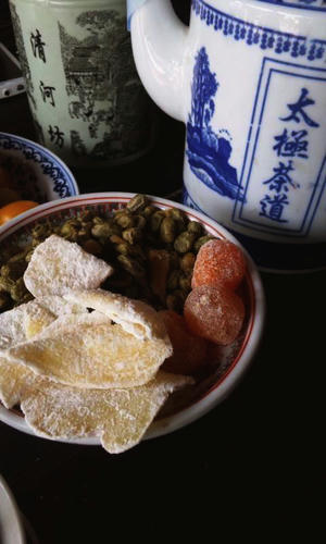 「小二上茶!」1回目は上演がありますが2回目は写真右上の『太極茶道』と書かれた陶器のポットにお湯を入れてくれるだけで後はゆっくり飲んでいってくださいというシステム。