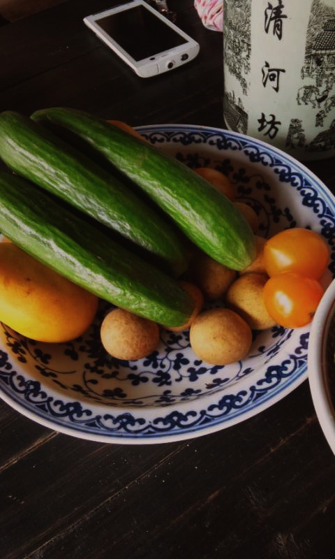 きゅうり、プチトマト、マンゴー(うろ覚え)、そして龙眼の果実。