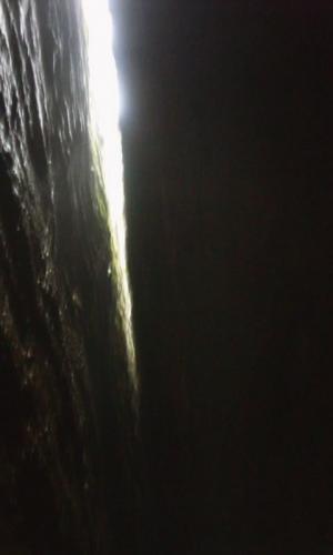 ちょうど洞穴の“裂け目”のような格好で、見上げるとなるほど一线(一筋の)天(空)。