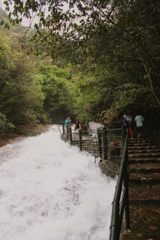 朝7時半頃から食事をした後出発、の予定だったのですが昨日の大雨のせいで川の流れが激しくなり、九曲渓での筏下り(九曲渓竹筏漂流)が中止、別の場所へ…とのアナウンスにほぼ全員からのブーイングが始まりました。