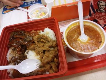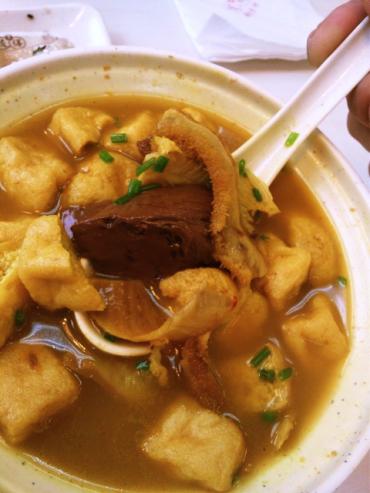 『咬不得』という店、ファミレスとファストフード店の中間のようなお店、こちらで食べた“咖喱牛肚鸭血汤”↓