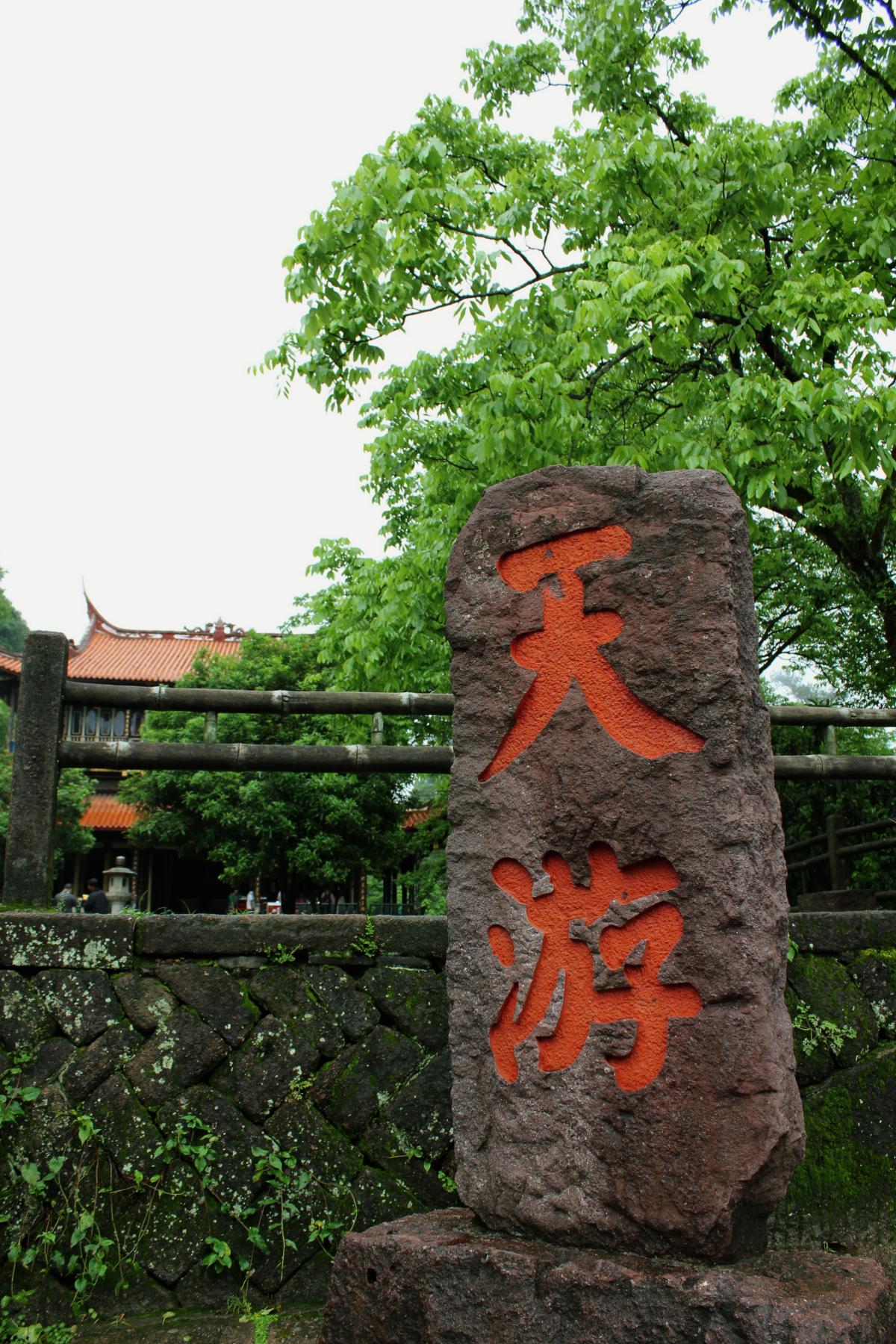 バスを降りて九曲渓に架かる橋を渡り大きな入り口からさらに九曲渓沿いに新緑の美しい道を進んでいきます。