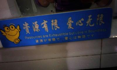 日本だと『節水にご協力ください』『限りある資源を大切に』とかですかね。